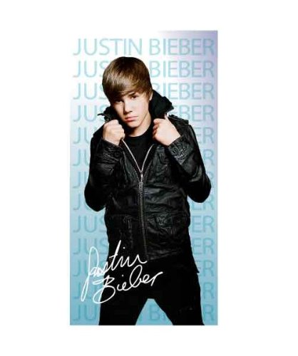Justin Bieber '' JB Wall'' Beach Towel 30" x 60" wearing Black Leather HOT! Features
